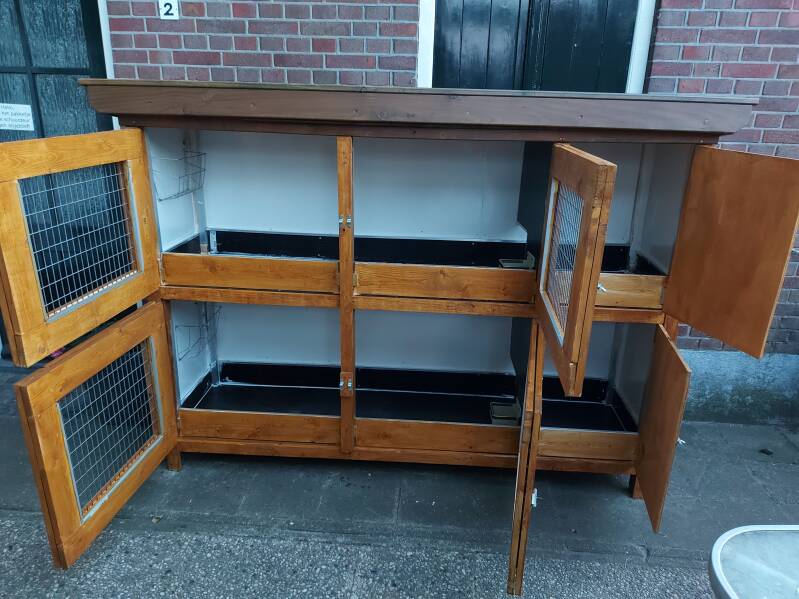 De maten per verblijf zijn 120 cm breed en 80 cm diep en 50 hoog.