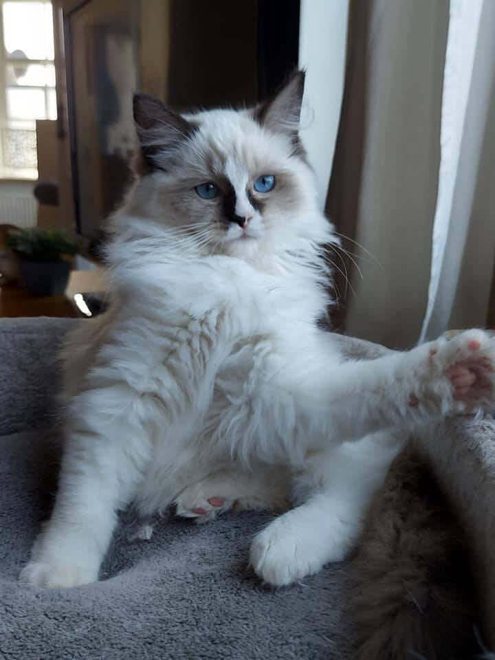 Echt een waanzinnige lieverd, dat echt de diva van het huis is. Liefste ligt ze op schoot te dweilen. Ze is gesteriliseerd want ze bleek van een vreselijk slechte cattery vandaan te komen. Had ze daar gebleven waren zij en haar vriendinnetje foxxy nu niet meer in leven geweest,.