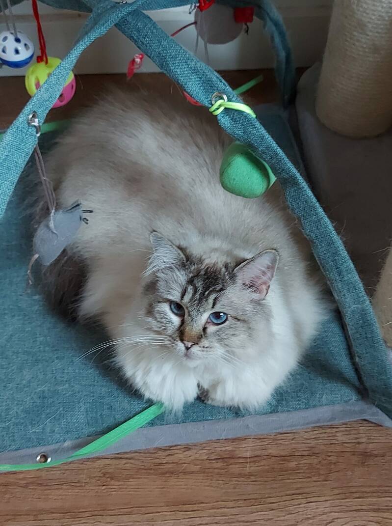 Super super lief en is echt een moedertje. Neemt de andere dieren op sleeptouw. Ook houdt zij meer van spelen dan lexxy. Ze is gesteriliseerd, want ze bleek van een zeer slechte cattery vandaan te komen.